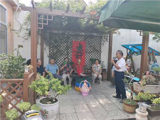 烈日炎炎挡不住志愿者祝寿活动的步伐,骄阳似火,气温39度,志愿者的爱心一点也不比气温低。志愿者冒着酷暑,九点半准时来到老寿星家中。十点祝寿活动正式开始。志愿者代表依次为老寿星敬献花馍,“寿”字,红围巾。站长王文晓致祝寿词。老寿星的长子讲话。