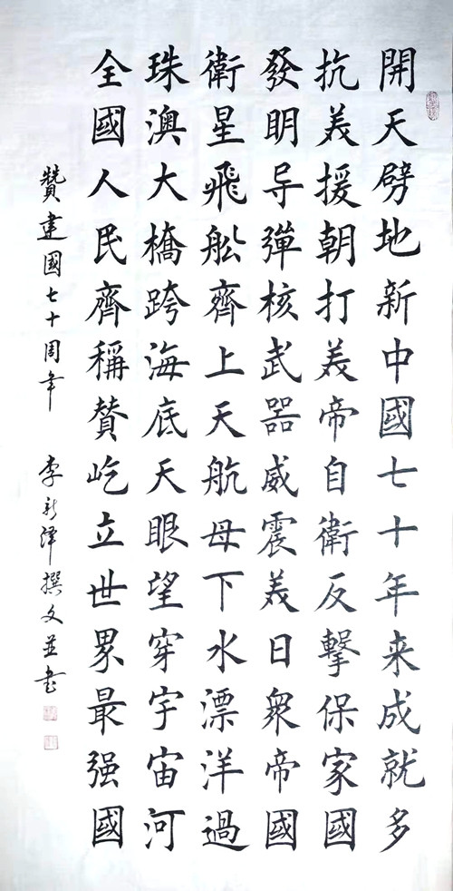 李新泽,男,四九年出生,河北省曲阳县人。受父母影响,自幼爱好书法,先学柳楷,后习欧楷,兼学二王。师从著名书画家于志学,梅墨生,方罗,杨宗霖,甄景新,结业于文化部艺术人才高研班。文化部高级书法家,外交部公共外交文化交流国礼艺术家,客座研究员。