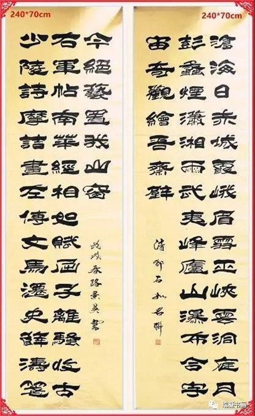 路景英: 字景砚,号静心居士。一九五0年生于北京昌平十三陵。满族。自幼酷爱书法,颜体入手,碑贴皆修。后又临刘炳森、卢定山贴专攻隶书,字体奇险、笔锋独特,苍劲有力。曾被中国人民解放军特种兵邀请题词。作品被全国各地爱好者收藏,并受到曰本、美国、新加坡等国际友人的喜爱。 路景英先生现任中国书画界联合会理事,中国部长将军书画院研究员、中促会国礼书画院副院长,中视频道书画院院士,东方艺术天地会员,中国佛教艺术画院院士,武当山居士。 路景英先生热心书画公益,长期奔波全国各地参加文化交流与大型笔会活动,人民网,新中央电视台,媒体联盟时代名家,人民艺术家等媒体对其事迹多次进行报道,获得有关权威部门颁发的荣誉证书和奖项数百次,其书法作品成为2018福满人间经典挂历,并入选国家级书画专刊和典籍,是当代有最具收藏价值和影响力的书法家。 【作品欣赏】