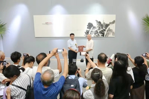 ![]() 开幕式结束后,张大华老师及其弟子向威海市文登区博物馆捐赠了自己的作品,包括禅画作品、雕塑作品、紫砂壶作品、古琴等,文登区博物馆馆长洪涛先生为他们颁发了藏品收藏证书。 ![]()