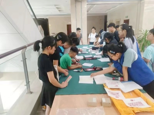 展厅外,区博物馆还为前来参观的游客准备了现场拓印活动,游客们可以通过现场的工具和雕版进行现场拓印,学习传统的拓印的技术,弘扬传统文化。