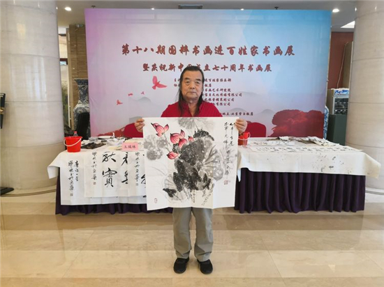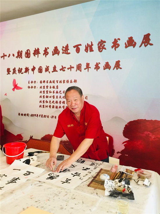 本网讯:2019年9月20日,由国粹书画进百姓家俱乐部主办;北京紫玉饭店、北京甜心宝贝文化传媒有限公司、北京宣和书画艺术研究院、北京红色之旅营销策划公司、北京沁香源酒业有限公司协办的“第十八国粹书画进百姓家书画展暨庆祝新中国成立七十周年书画展”在北京紫玉饭店隆重举行。