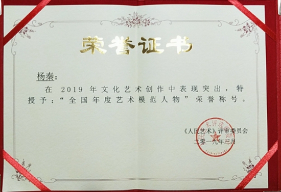 2019年文化部艺术人才资料数据库授予杨秦先生“中国艺术人物”荣誉称号!