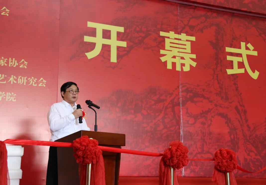 中国美术家协会分党组书记、驻会副主席兼秘书长徐里致辞 国际科学和平文化艺术委员会、北京宣和书画艺术研究院、新华书画院、燕京书画社 、北京子鸣武术文化传播中心、德艺冠群文化有限公司、翰海书画院、中国人民解放军第一二〇六工厂等单位协办。