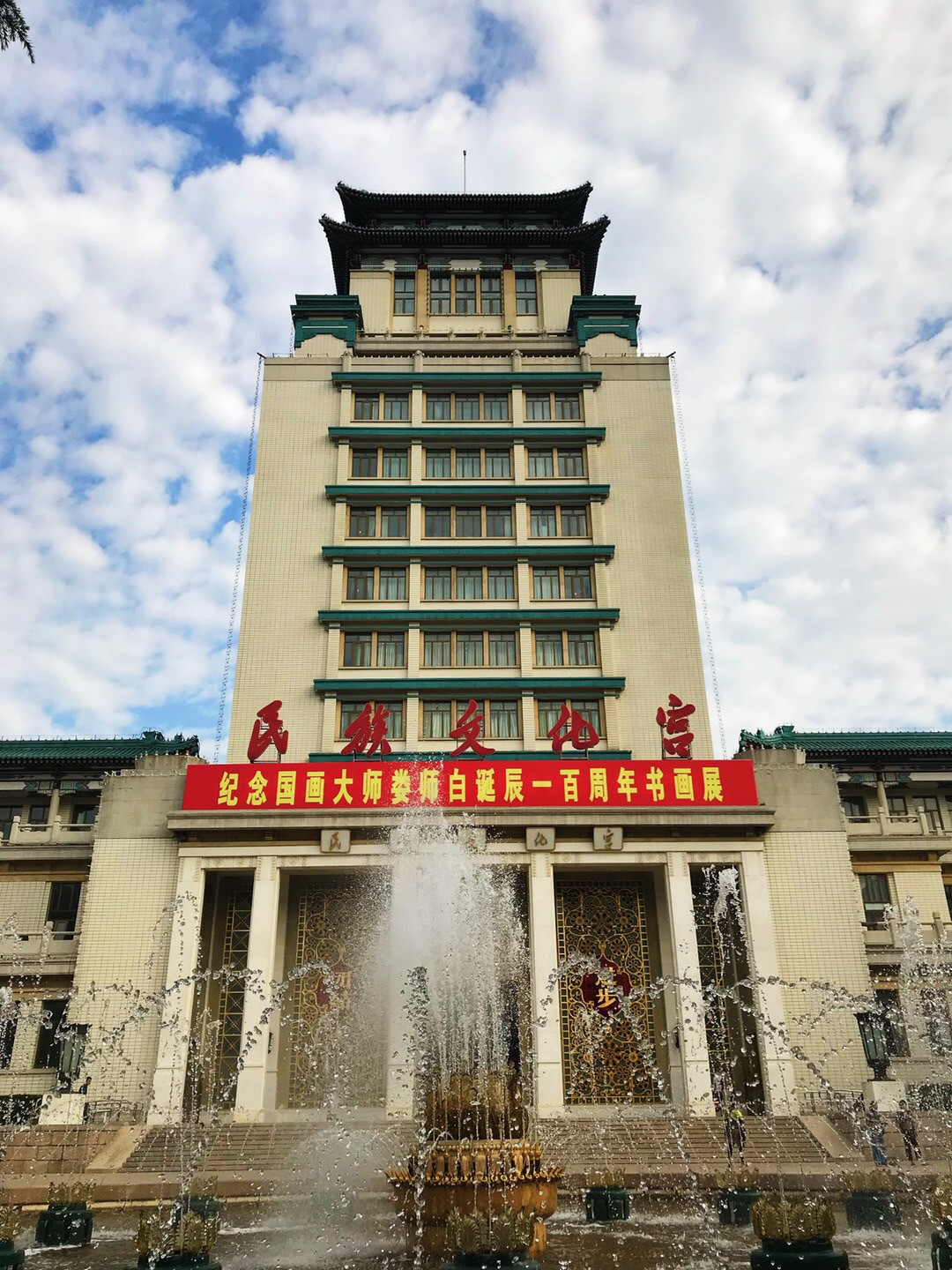 开幕式上,民族文化宫展览大厅如节日般张灯结彩,盛装扮得喜庆、热烈、祥和。民族宫主楼上方的巨幅横标写着“纪念国画大师娄师白诞辰一百周年书画展”。