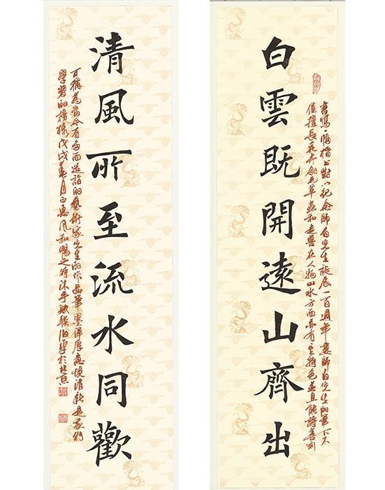 31、田伯平 中国书法家协会理事、北京市书法家协会驻会副主席 对联:白云既开远山齐出,清风所至流水同欢。