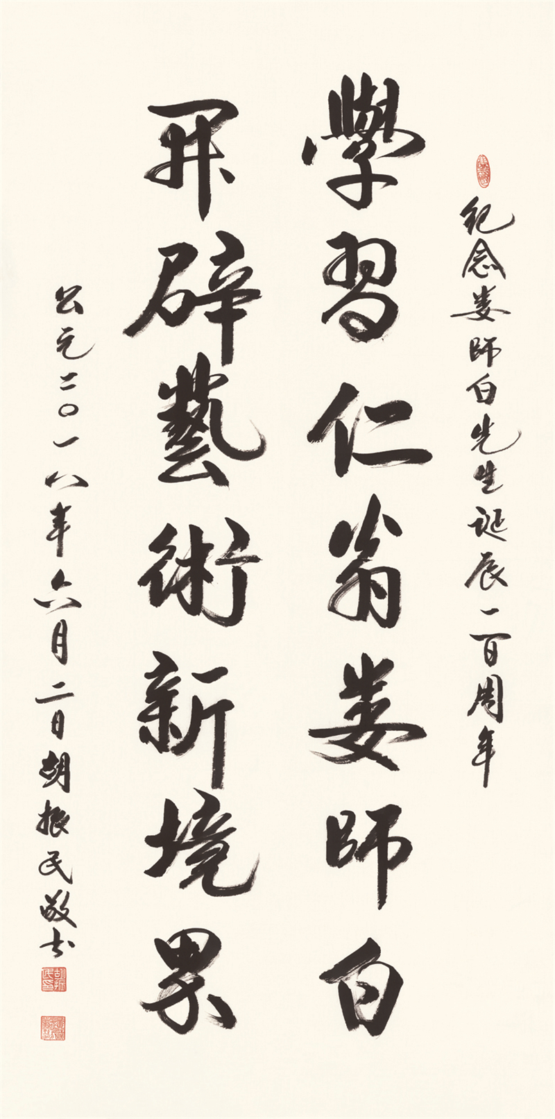 14、王明明 原全国政协常委、中国美术家协会副主席、北京画院院长、北京师白艺术研究会艺术顾问 书法:师白百年。