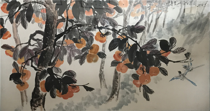 第十届、十一届全国政协主席贾庆林观看娄师白为娄述德生日画的作品《猴桃》