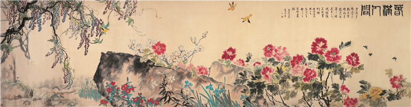娄述德向贾庆林介绍娄师白一生中创作的最大幅作品《春满人间》