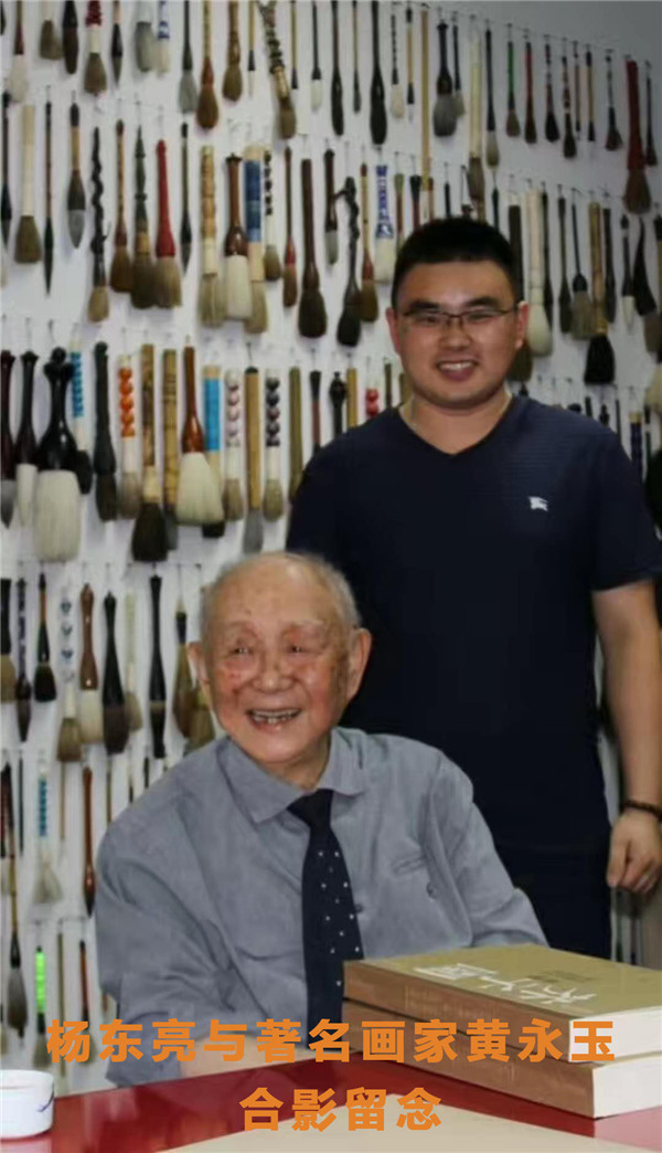 中国艺术家新闻网 讯:宣和艺术院秘书长杨东亮与著名画家黄永玉合影留念