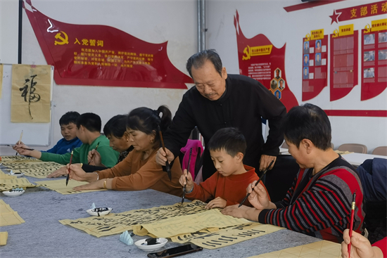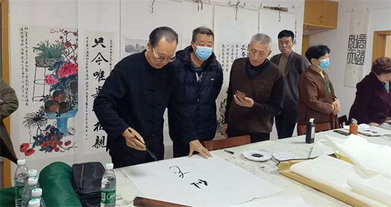 课堂上,学员们围坐在桌前,专注地临摹着字帖。教室里只听得见毛笔在宣纸上摩挲的沙沙声,仿佛是一首美妙的乐章。有的学员眉头紧锁,认真思考着笔画的走势;有的学员则面带微笑,沉浸在书法带来的愉悦之中。战国权老师在教室里来回走动,不时地停下来,为学员们指点一二。他轻轻握住学员的手,引导着他们调整用笔的力度和方向,那耐心细致的样子,就像一位慈爱的长者。